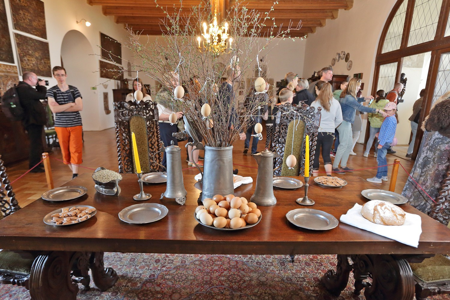 Hradní kovárnu obsadí mistři černého řemesla. Ve stáncích na třetím nádvoří se objeví jarní věnce a dekorace z proutí. Zájemci se dozvědí o výrobě madeirových kraslic a každý příchozí bude moci ochutnat třeba čerstvě upraženou kávu či velikonoční perníček. Prostor hradní pekárny oživí šperkaři, keramici a malérečky. V hradním jádře bude v provozu hradní mincovna a v nově zpřístupněných místnostech paláce se uskuteční soutěže pro děti. Palácové nádvoří rozezní tóny lidových písní. O víkendu tu zahrají cimbálové muziky.