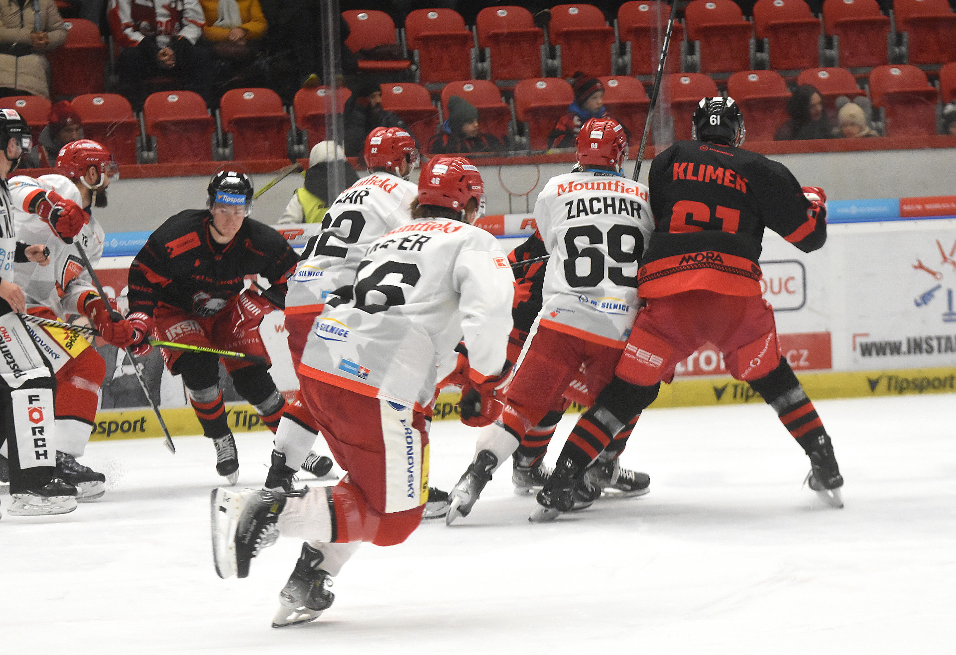 Na začátku zápasu se Olomouckým moc nedařilo. Více ze hry měli hosté. Byli častěji na puku a hrálo se většinou jen před Konrádovou bránou. Z převahy vytěžil Hradec také vedoucí branku. To Moru probralo a netrvalo dlouho, aby se vrátila do zápasu. V 11. minutě tečoval nahození Řezníčka Macuh a bylo srovnáno. Tím se srovnala také hra. A Hanáci začali být také nebezpeční. To jim přineslo vedoucí branku. Dal ji v 17. minutě Káńa z přihrávky Nahodila. Těsný náskok dva k jedné držela Mora i po čtyřiceti odehraných minutách. Ovšem na začátku poslední dvacetiminutovky se stav měnil. V čase 44:19 srovnal Jank, jeho branku potvrdilo poměrně dlouhé zkoumání videa. Ve zbytku řádné hrací doby se stav neměnil, takže se šlo do prodloužení. V tom hrála Mora přesilovku, ale bez využití. Skóre zůstalo dva dva, což znamenalo samostatné nájezdy. V těch Hanáci vybojovali druhý bonusový bod.