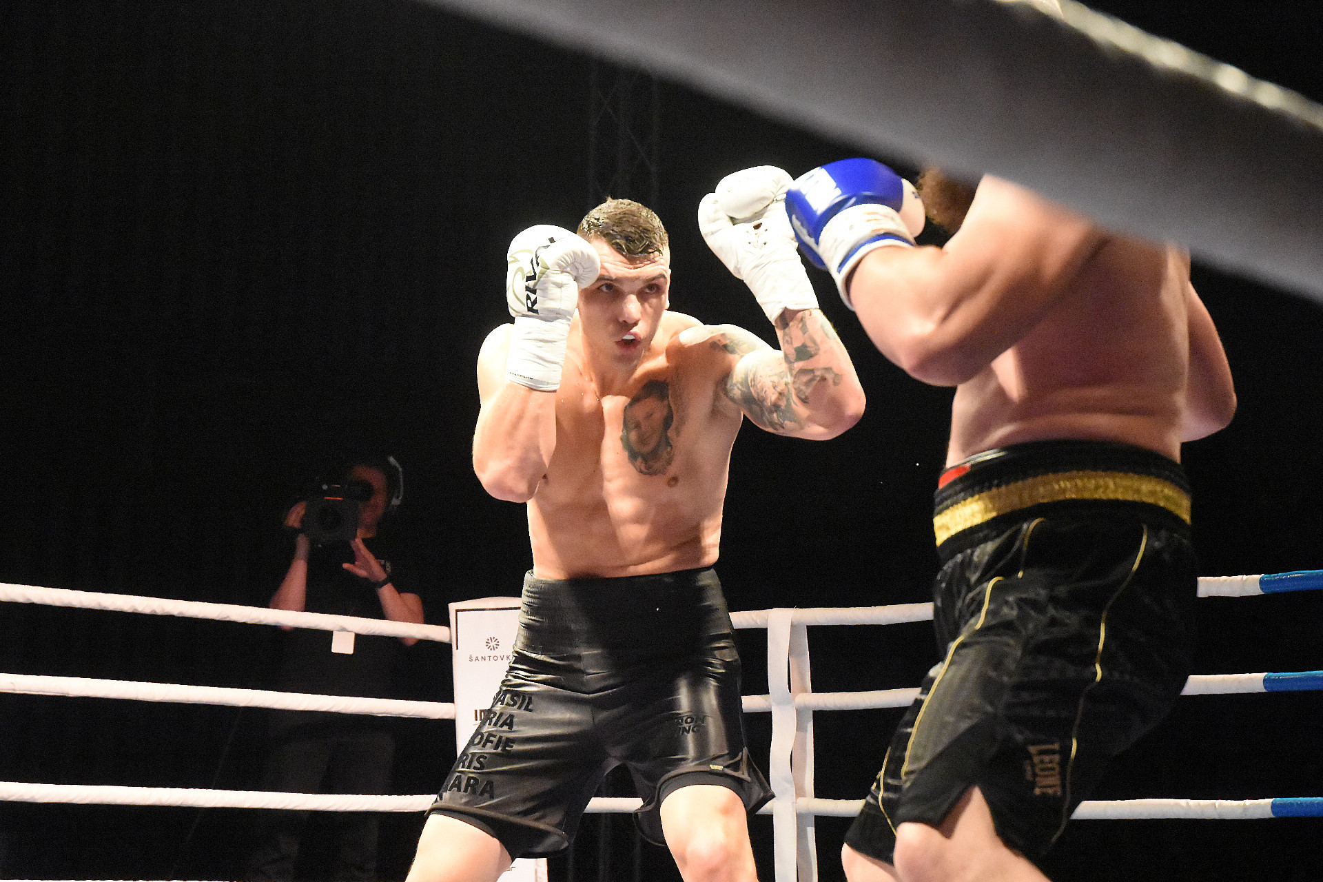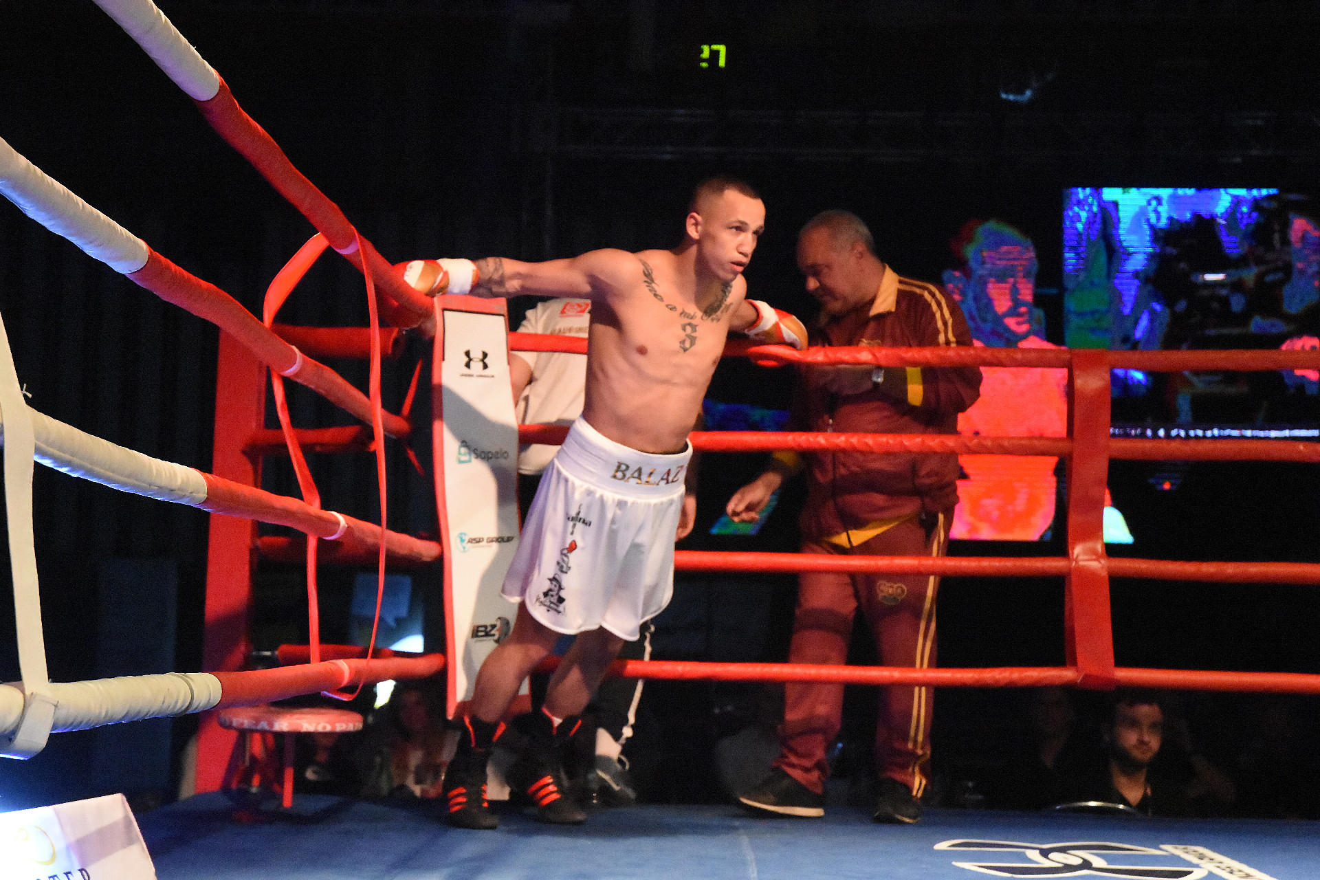 V dalším z řady zápasů se představil také olomoucký boxer Patrik Baláž, který Gruzínce Surmavu poslal k zemi.