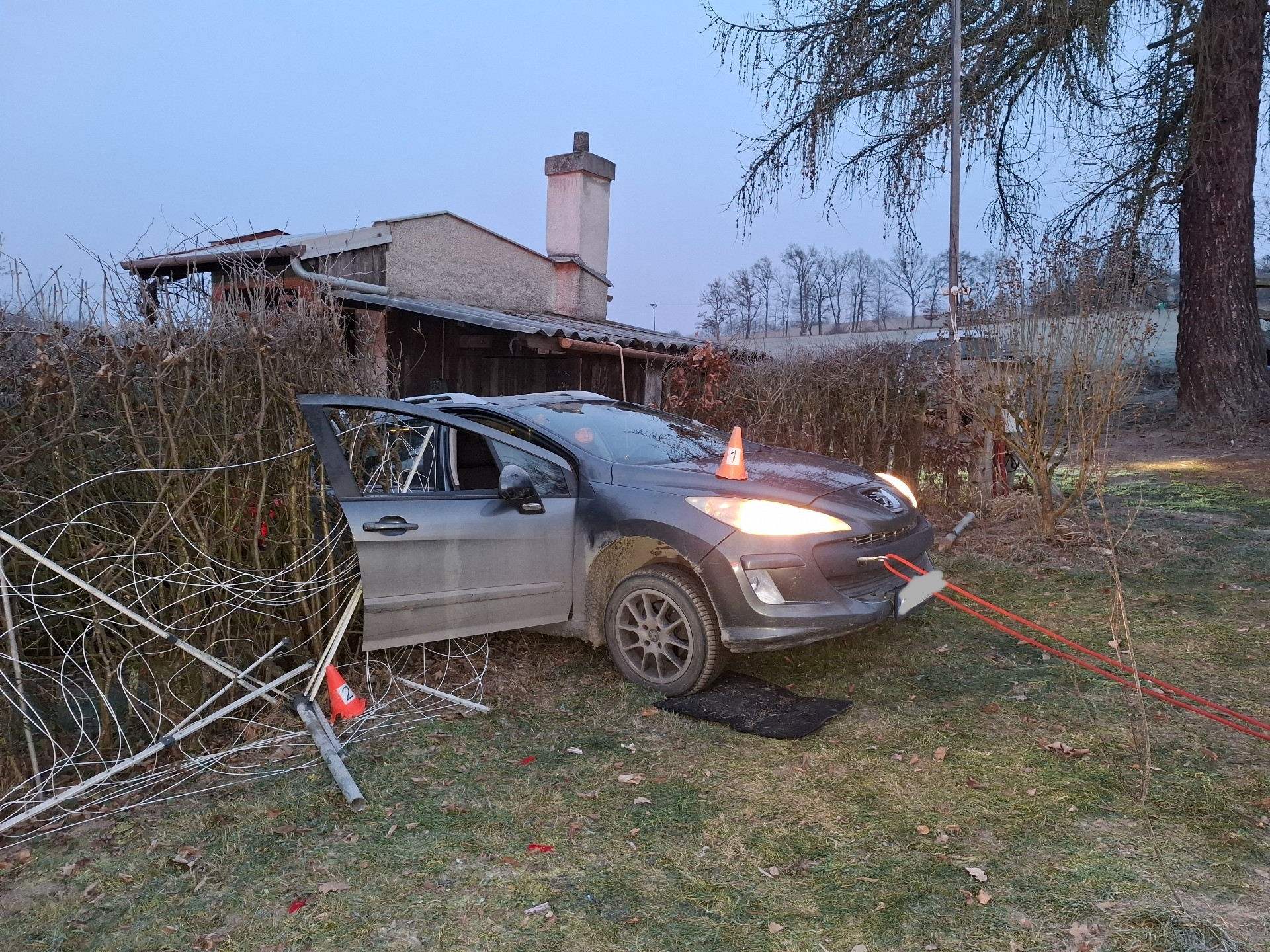 V Hlubočkách na Olomoucku hasiči ze živého plotu vyprošťovali 26. prosince brzy ráno osobní automobil, který v něm skončil po dopravní nehodě. Pomocí navijáku jej z hustého porostu vytáhli, nehoda se obešla bez zranění.