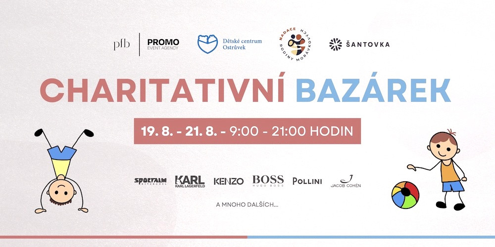 Charitativní bazárek se bude konat ve dnech 19. 8. - 21. 8.,a to vždy od 9.00 do 21.00 v prostorách Galerie Šantovka,v 1. patře vedle prodejny PFB Concept Store.