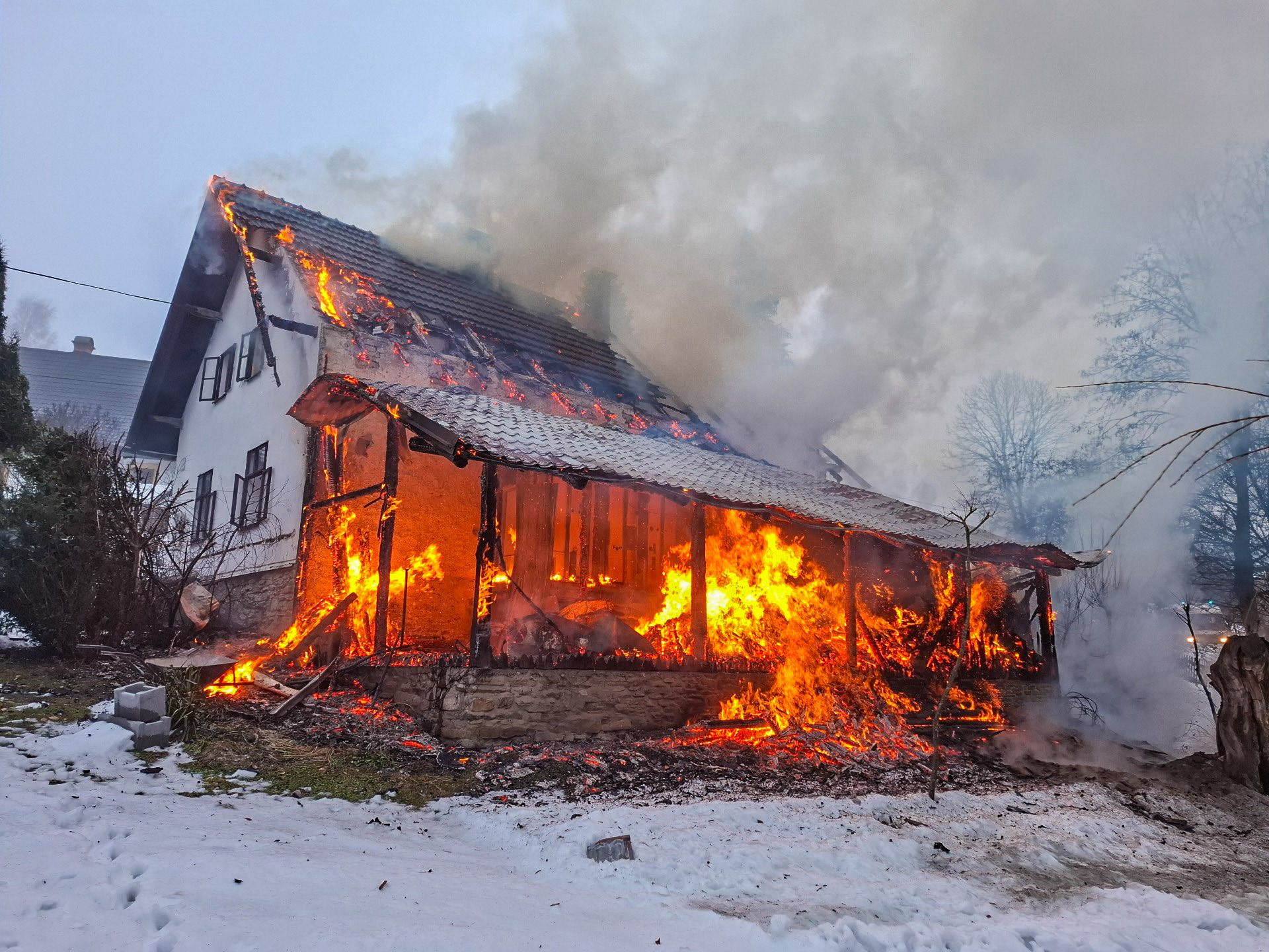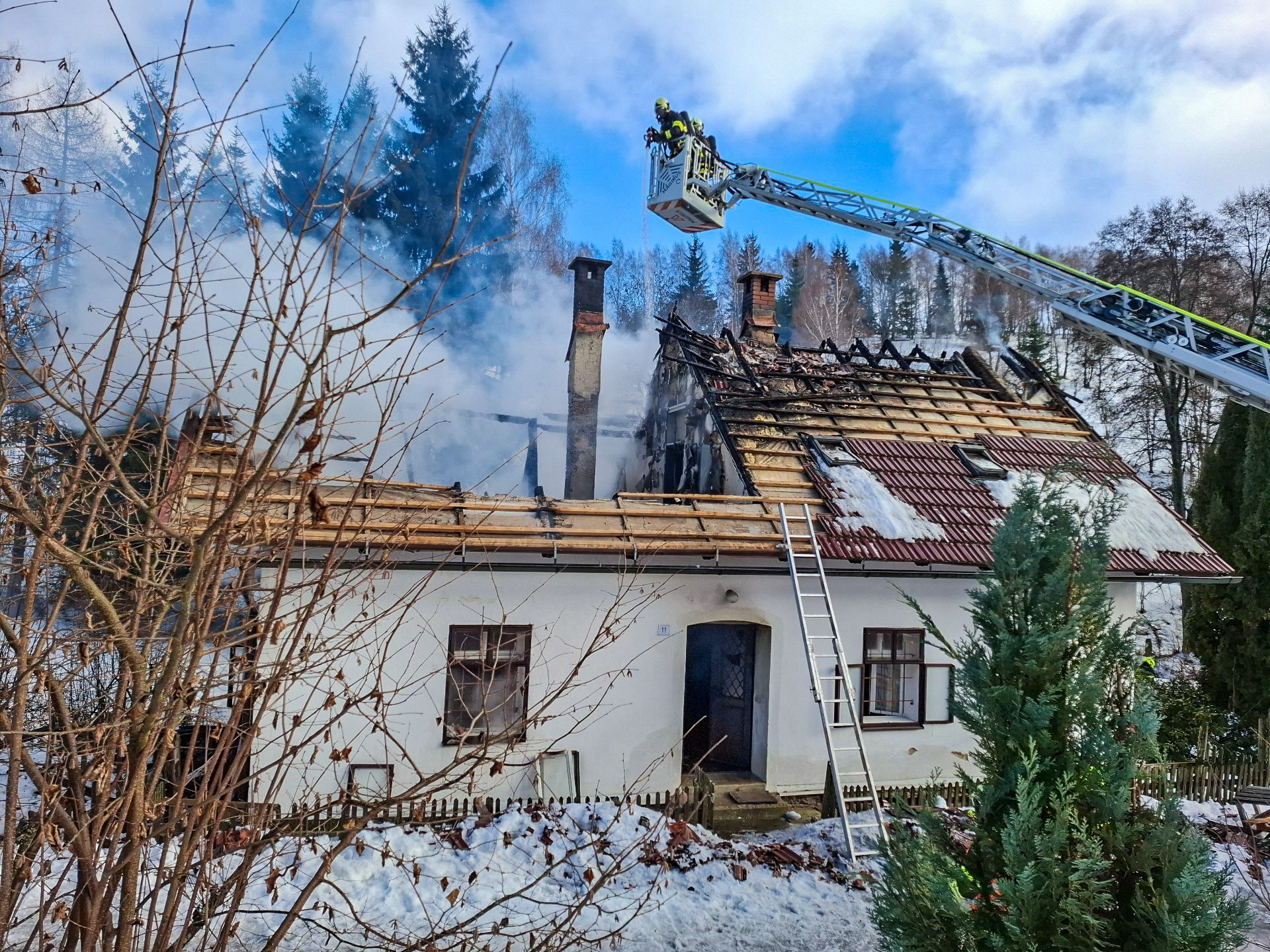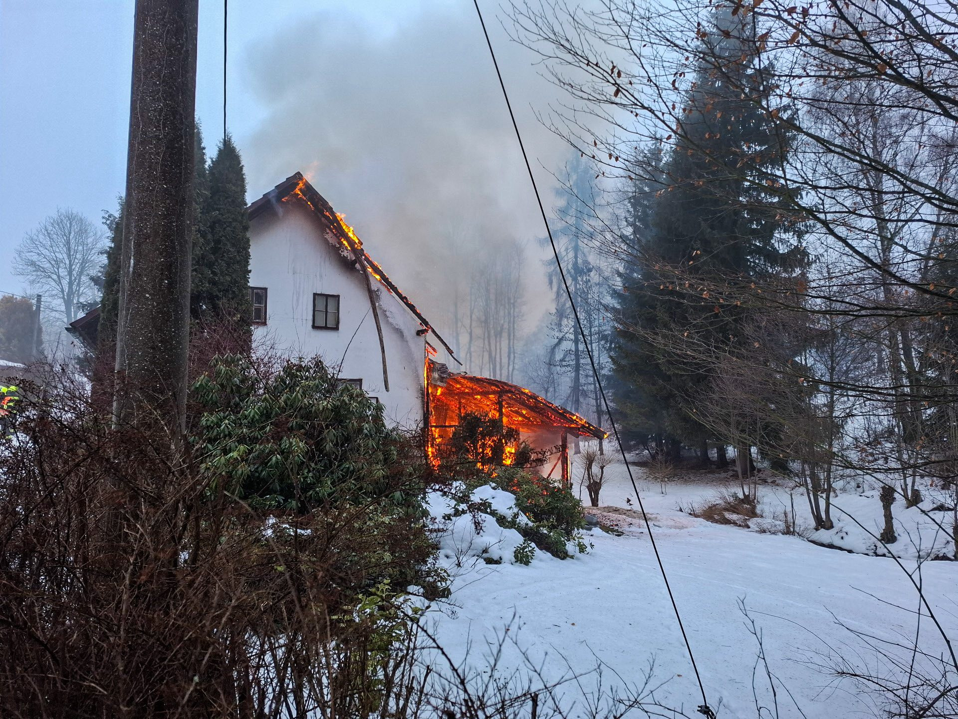 Šest jednotek hasičů zasahovalo v pondělí dopoledne u požáru chaty v Podlesí u Malé Moravy. Po příjezdu prvních jednotek byl přístřešek a část střechy objektu v plamenech.